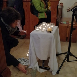 In dem Sinne, dass jede und jeder von uns Friedens- und LichtbringerIn sein kann, waren die Gläubigen eingeladen, Teelichter vor der Christus-Ikone zu entzünden.